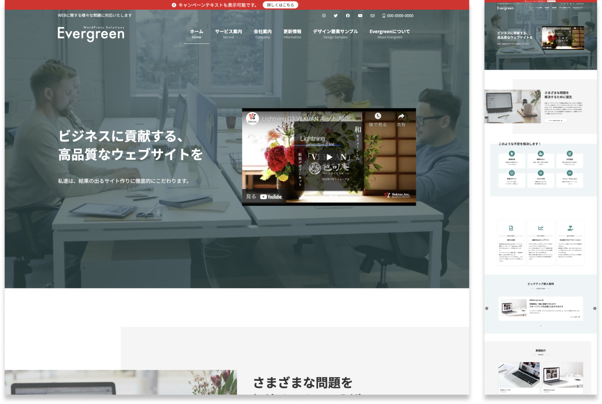 このサイトは Lightning (G3) 用のデザイン拡張プラグイン Lightning G3 Evergreen を使用しています。